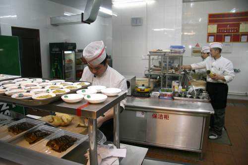 其次、冷菜間是冷菜成品切配裝盆的場所,冷菜的製作應遵循“專人、專室、專用工具、專冷藏”的“五專”製度。
