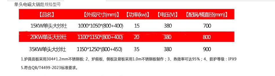 2、采用微晶板,能夠很好的防水、防火、防漏電、防幹燒等防護,可以抗擊衝擊,比一般單頭電磁大鍋灶更加的耐磨、耐腐蝕、耐高溫。超靜音工作環境,45分貝以下。