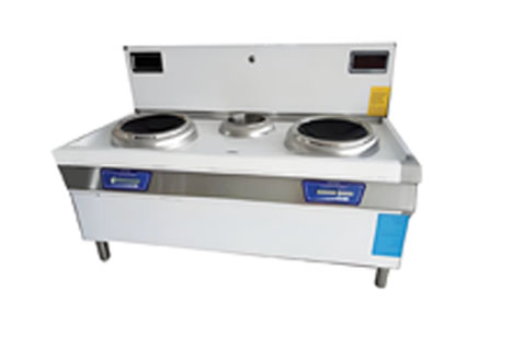 雙炒單溫電磁灶 ,又稱雙炒一溫灶,雙頭單尾炒灶,功能描述: