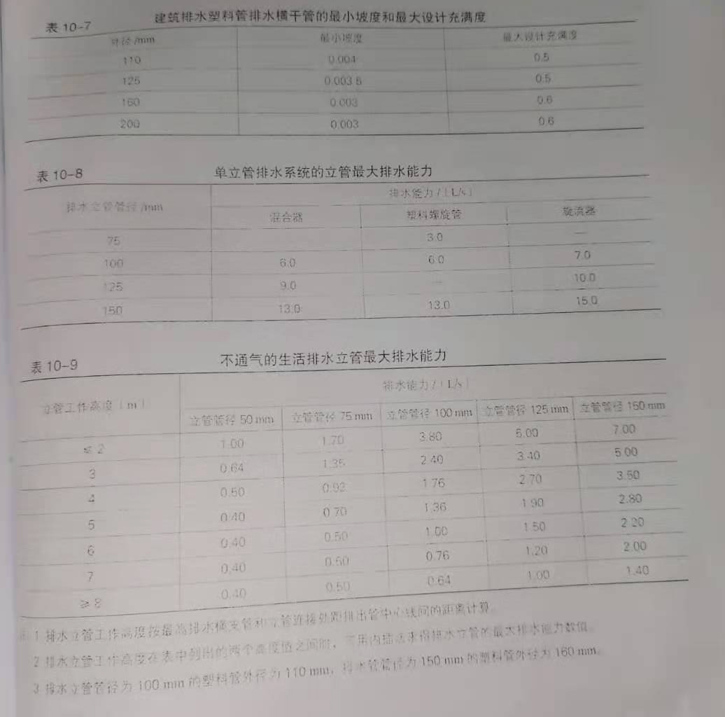 表1是規範中的定額數據要求,由於叼嘿软件下载大全內的汙水含有大量的油脂、殘渣,泥沙等雜質,容易堵塞管道.所以應適當加大管徑.有利於排水和清通。規範明確要求:“公共食堂叼嘿软件下载大全內的汙水采用管道排除時,其管徑比計算管徑大一級,但幹管管徑不得小於100mm,支管管徑不得小於75mm,“叼嘿软件下载大全排水管管徑最小為50mm,要用在無油脂、雜物,混沙等雜質排入的小型器具下,如洗手池、池前地漏等排水量比較小的連接管道,其他前端管徑均應為75mm以上。