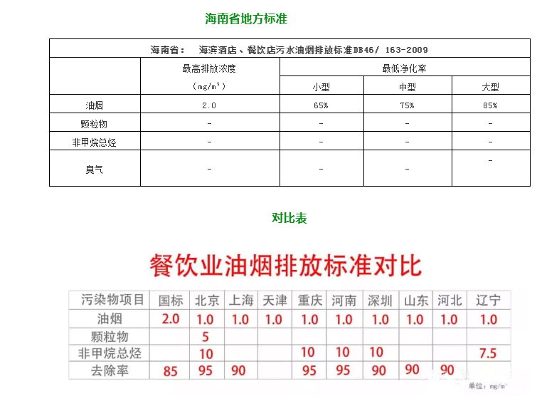 成都油煙淨化設備廠家告訴你全國各地餐飲油煙排放標準是怎樣的