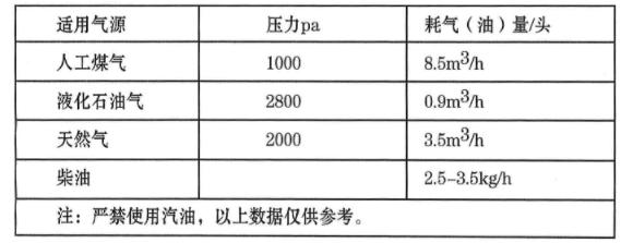 2、燃料:柴油、煤氣、天然氣、液化氣(嚴禁使用汽油)。