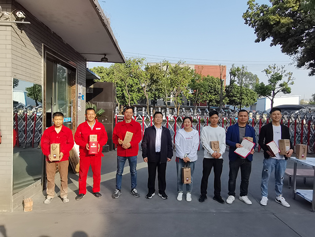 在各部門的負責人回顧完本部門的工作後,便開始了頒獎環節。獲獎人員紛紛上台領獎,並和公司領導合影。
