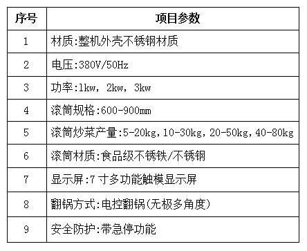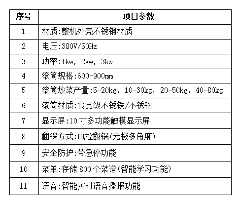 1、自動控溫,自動調節火力,自動翻炒,自動加料。