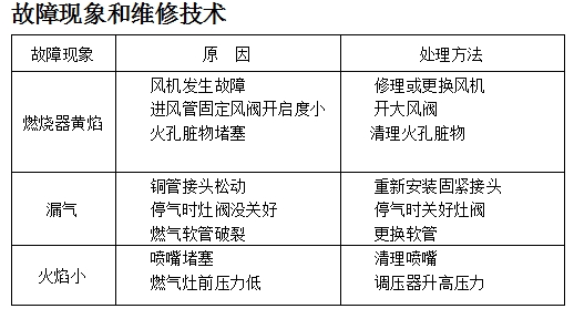 二、商用燃氣炒灶的常見故障及解決辦法
