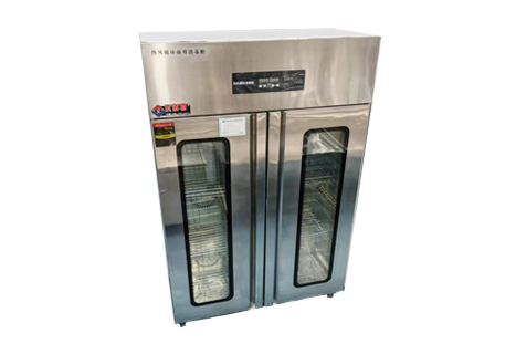 通過電熱管加熱產生熱能,利用風機將熱空氣在櫃內循環,使溫度不小於120℃,消毒工作時間大於 15 分鍾,以實現對餐飲具消毒的目的。