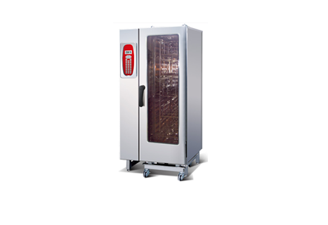 1、20層萬能蒸烤櫃具有四個常用模式,全麵實現中餐的蒸、烤、燜、燉、焗、煎等。
