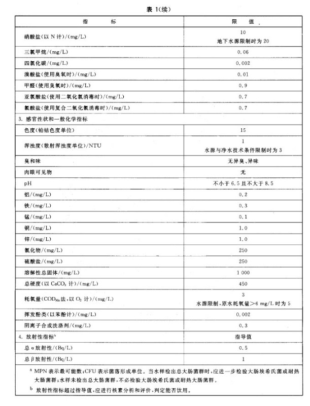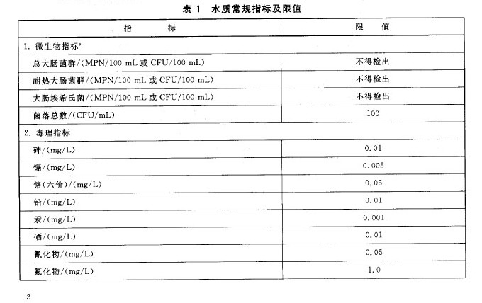 農村小型集中式供水和分散式供水的水質因條件限製,部分指標可暫按照表4執行,其餘指標仍按表1、表2和表3執行。